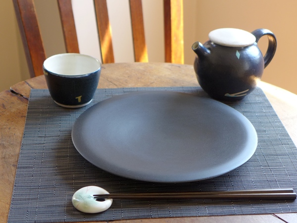 山田晶さんのこちらの漆黒8寸リム皿にお料理盛りつけると