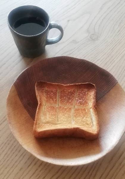 平じゃないからトーストの湯気? 熱がお皿に直接伝わらないので